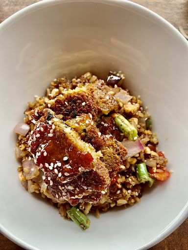 Ideas for improvement: ❎ enhance flavor of coconut rice - I could not taste the coconut rice at all as the flavor of the Asian sauce was super strong ❎ falafel were baked in palm oil and the taste was not great - unfortunately that took away the actual flavor of the falafel - I suggest baking them in vegetable oil