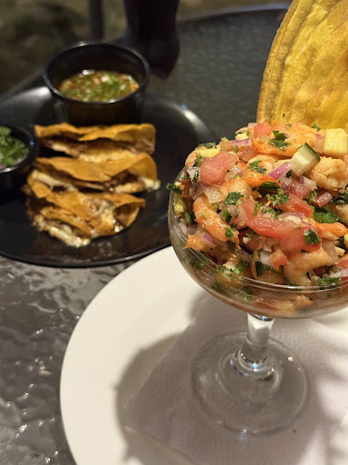 No probé la comida, por lo tanto no tengo comentarios al respecto. Los cócteles me parecieron sencillos (normales). Sin embargo, nuestra experiencia en este lugar se vio opacada por el mal trato, la arrogancia y la mala vibra de un solo individuo: un argentino que estaba encargado de la música.