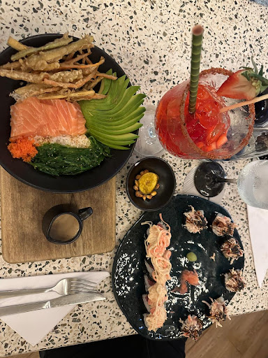 Additionally, service is friendly and attentive, even if it gets busy. It tries to accommodate dietary preferences but there isn't much earthy food. The menu includes many different options like sushi, baos, pokes, rices, etc. When I went, l ordered a delicious sushi called "insurgente" it was a mix of delicious things!