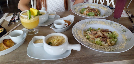 En cuanto a la comida refiere, no tardó en llegar, y debo decir que se saca un 5 de 5, probé una crema de champiñones con pollo, y una ensalada Cessare sencillamente espectacular, el precio está bien justificado.