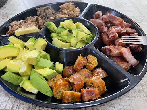 Ojalá hubiese leído las reviews antes de ir y me hubiese ahorrado un buen dinero. El ambiente es agradable ordenado y limpio, el mesero que nos atendió prestó un servicio excelente, lástima que la comida sea todo lo contrario, en las bandejas que pedimos la pechuga de pollo estaban a medio asar y una seguía cruda, todas sin adobar/marinar, sin sabor, y con un olor característico de una pechuga vieja guardada meses en congelador que se le pega olor a nevera vieja, a parte con una salsa que de verdad no nos gustó y ni preguntaron ni advirtieron que le agregarían, ni la salsa les dió sabor, aparte las pechugas llegaron medio frías, el huevo frito todavía estaba medio crudo con parte de la clara sin cocinarse del todo, la ensalada sin vinagreta sin sal ni limón. Aunque después de comentarlo al mesero nos dieron un chicharrón para llevar en compensación de la pechuga cruda, al partirlo en la casa oh sorpresa, estaba crudo en el interior. Mejorar el desempeño del personal de cocina en cuanto a la sazón y los tiempos de cocción y fritura. El que busque un lugar donde haya posibilidad de contraer salmonela por carnes/huevos mal cocidos o le guste la comida sin sabor es el recomendado, para el que busque calidad y buen sabor en la comida no lo recomiendo,...