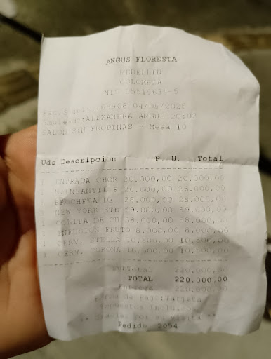 This is an open air restaurant serving burgers and steaks, not a huge menu, but some decent options. You can sit under the roof or out on a patio facing across a street to a small park. Service was very prompt. I understand in Colombia the waiters will not clear your table because it implies they are suggesting you leave. When you're ready to order something else or are ready for "la cuenta", the bill, simply flag down your server. The music was soft American including Norah Jones and Faith Hill played at a comfortable volume. The pricing is about average for a sit down restaurant. ...