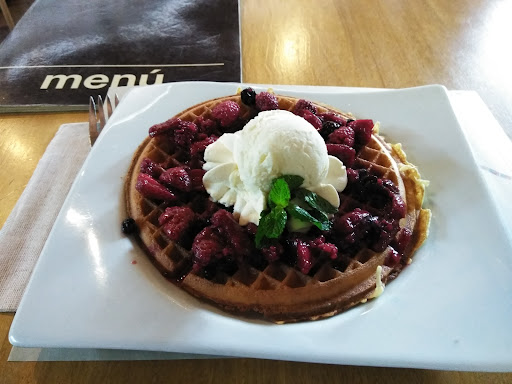 Read moreI walk in about 40 mins after they opened. Jam packed I saw one table available on the first floor, and I saw stairs. Upstairs is a better environment and lucky I got the last table. As I looked around I saw about half of everyone with menus in their hands so I knew the kitchen was going to be slammed. I thought let me just order what I came here for, the Acai. Nope they didn't even know what I was saying. What a huge disappointment. Must be one of those bait and switch items, that they vaguely state online and not available. I should have left then but I ate the waffle with ice cream, and fruit. Can't really mess that up. As long as the ice cream is still frozen. To my surprise it came out fast. Faster than most of the other people. They order more lunch type food. And to mention I've eaten my meal waiting for the check and I still haven't received my juice.