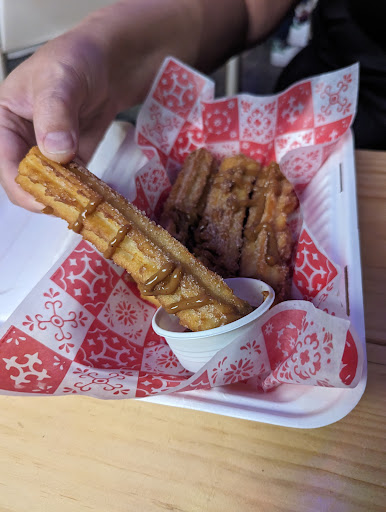 Read moreExperiencia de comida mexicana callejera gourmet en Medellín. Estuvimos en el local de la 70. Es un lugar pequeño abierto hacia la calle donde te sientas al lado de la acera en unas mesas con base de guacales plásticos y tablones encima. No es un restaurante, es un lugar de comida rápida, no puedes conversar por el alto nivel del volumen de la musica urbana que ponen. La carta es pequeña , especializada y suficiente. Todo lo que probamos fue delicioso. Los tacos con pequeños pero llenos de sabor, las bebidas micheladas o al estilo de soda fria, preparadas con diferentes bebidas alcohólicas , aperitivos, aderezos, sales y piques, son exquisitas y refrescantes. Finalizar con unos buenos churros con arequipe calientito y en su punto, quedas listo... Con esto quedas listo para irte a seguir de rumba o irte a descansar. Porque es el lugar perfecto para empezar y terminar una rumba más no...