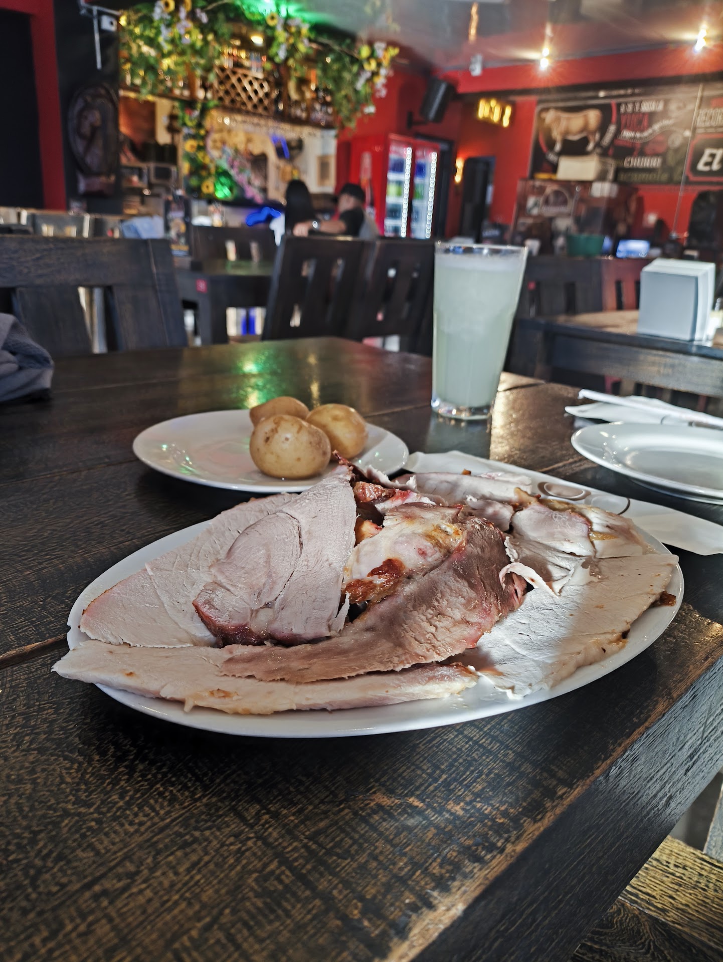 Traditional meat specialties are dished up in this warm, spacious restaurant with live music.