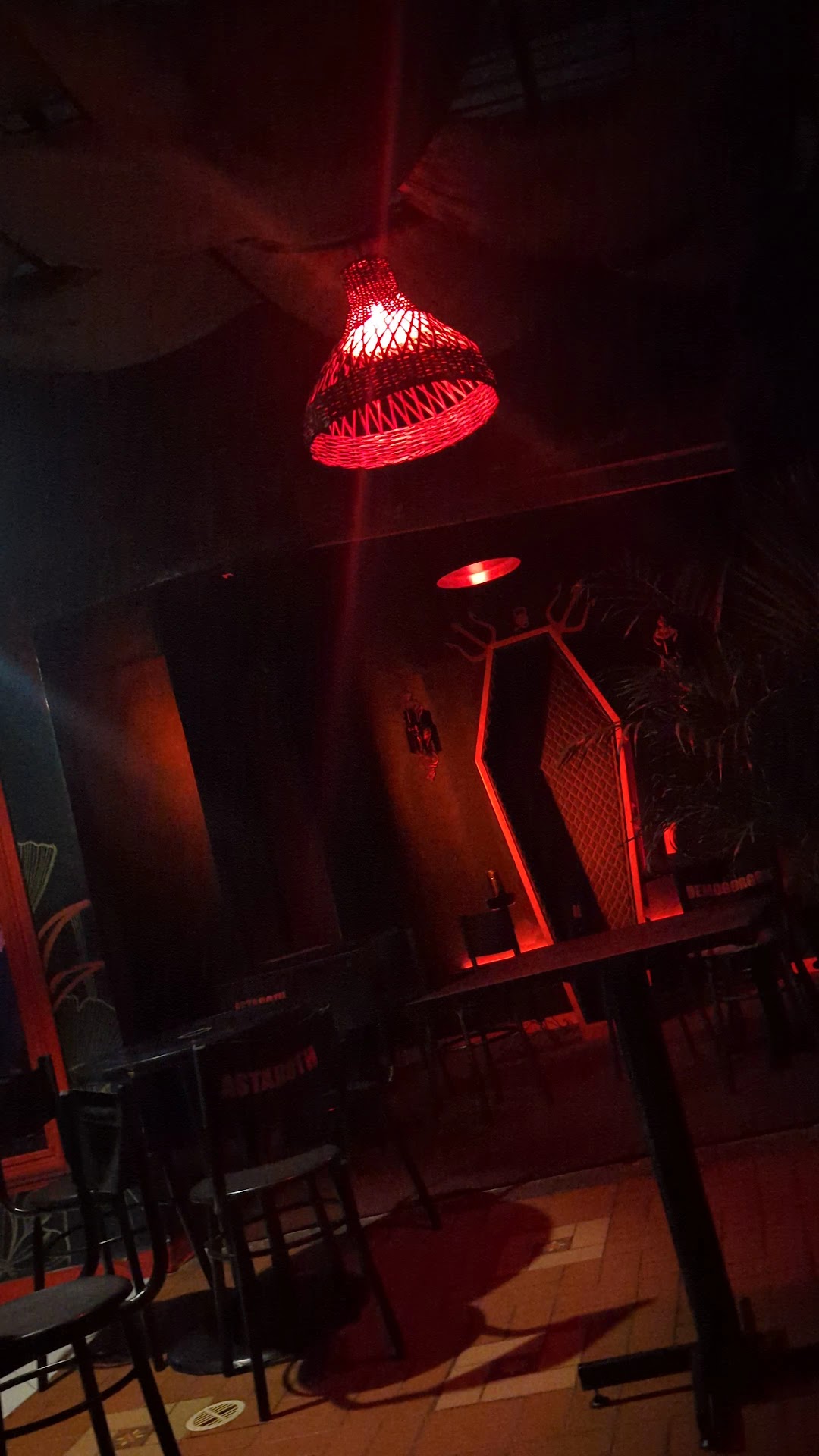 Read moreEl lugar lo vengo siguiendo hace mucho tiempo por redes sociales. Siempre quise visitarlo. No hay algo así en Colombia. Me gusta su marca y lo que representan, había cenado, venía a conocer el lugar... Aproveche a disfrutas un par de cerveza de la casa PRESAGIO: Recomendada la Pale Ale con sabores frutales/aromático., ligera y sabrosa; luego prove una Roja Socthich, un poco más pesada y agridulce. Esta buena, aunque preferí la primera, para picar pedí unos platanos DR. DEMON, que mencionaban QUESO MONTERREY, sin embargo el queso no se asomó, creo que fui el último plato de cocina y le faltó o cariño o no tenían queso, a lo sumo imaginario... Es una lastima lo del queso, no importa la atmósfera compensa, sin embargo el personal, en especial la chica no ha sido tan amable... Su respuesta ante la petición de un aderezo tipo suero fue ruda. Me estoy comiendo mis plátanos pero esperaba más del queso del plato del Anfitrión del lugar. No por más el incidente del ratón, me ha parecido muy grato, DIGNO PARA CUALQUIER METALHEAD GLOBAL. HAIL METAL, HAIL SATAN, JAIL WORKOUT. Salve HOUSE OF DEMONS! Saludos...