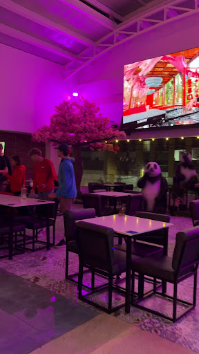 The vibe is top-notch. The restaurant is spacious, clean, and located in an upstairs rooftop area of a mall with an open-air feel. The decor, featuring pandas and cherry blossom trees, makes it fun and cozy.