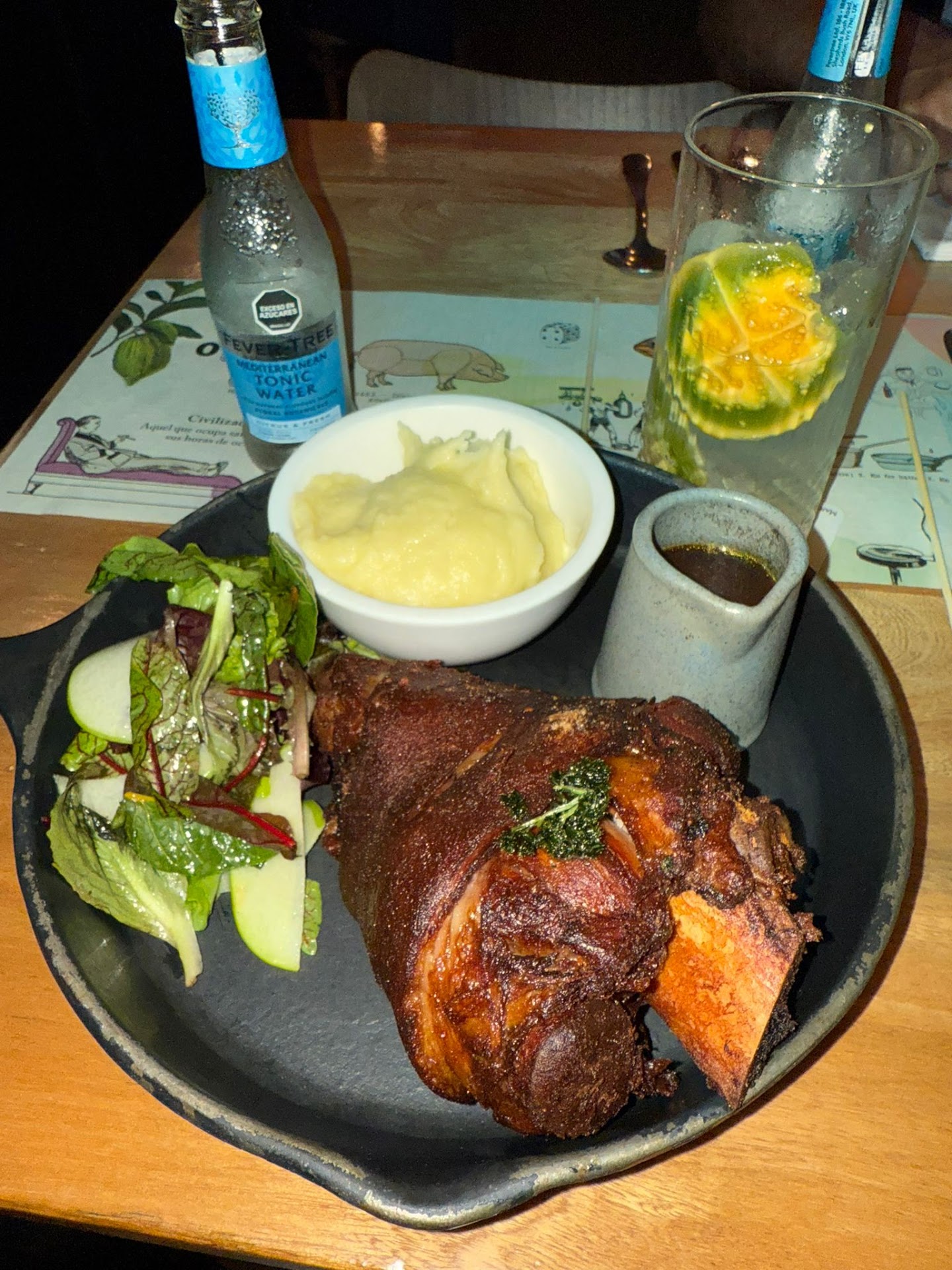 And then the real treat begins. I've been to Oci three times now, and bucking the typical A-class restaurant trend, it keeps getting better and better. Head chef Lali somehow continues to blend the native flavors of her country with the exotic spices of others. Last night we decided to just have some drinks and appetizers. We started with some bloody Mary's, which were the perfect mixture of spice and freshness. We then started with the areapas (corn Patty's) with oxtail, then the pork belly skewers, we then received a dish that was so incredible (recommended by the chef) that I don't know even know the name, and finally an ahu tuna tartar.