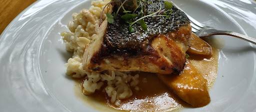 The white fish was cooked well, but it almost felt like there was no seasoning to it. The only good thing about it was the side of risotto - that finally had some flavour. The bananas on the side were unnecessary.
