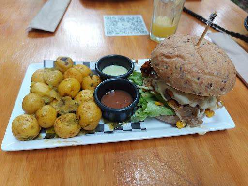 Read moreWe have been coming here for about 5 years, the daily menu is price quality quite good if you are into vegetarian/vegan food , as such I mostly choose the daily. Ordering a la carte can be a hit or miss, today I had the nugget burger with addition of papas criolas. The papas criolas are very tasty as usual but the nugget burger not my thing, eatable but not for repetition. Already the freshness of the bunn is not comparable with a normal burger place, let alone the vegetarian patty (not sure what it's made of) but it misses good texture as well as taste. I would have rated this burger a 2/5 but as I know the place has in general good daily veggie menus for an affordable price, I'll leave...