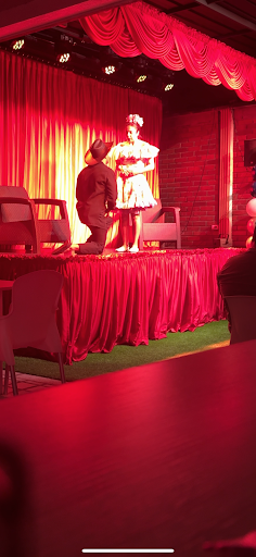 Hay obra de teatro los viernes y fines de semana sobre las 8:30 pm en el mismo restaurante. Es bastante amplio y cómodo.