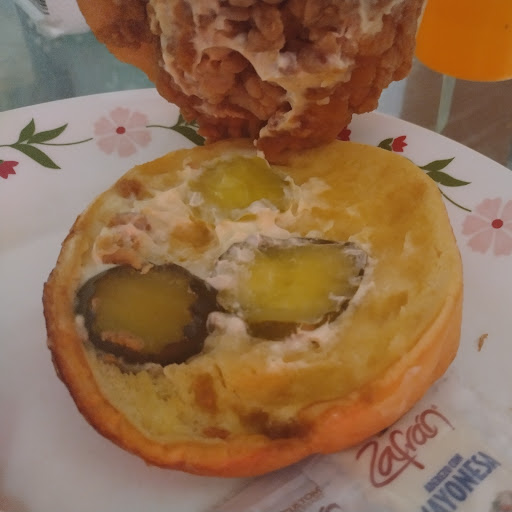 Puro pollo con harta harina por su composición de ser apanado. Es un espacio que se convierte en una opción de alimentarse. No me gusta mucho. Pero es válido.