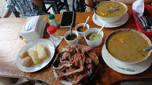 Hicimos el pedido una sopita de arroz que en el momento le dije al señor que me atendió que me regalará sal por qué la sopa no tenia. una picada sencilla chicharrones y dos colipolas. Eso fue todo el pedido