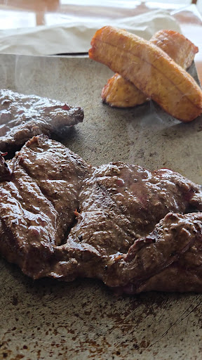 The food is just OK, nothing spectacular. We were three people. The chicken was pretty goid, the beef was average, and the pork had so much salt it was really difficult to eat - and I tried to clean it with three napkins. If I was in the US I would have sent it back.