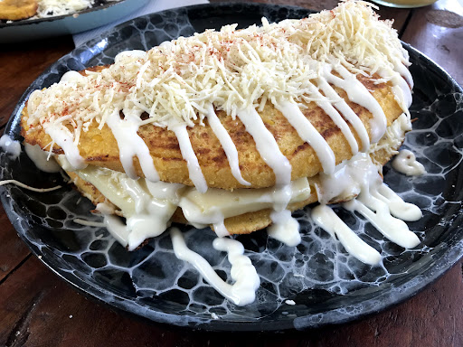 Read moreI ordered a cachapa con queso. This consists of a round thick corn meal like bread folded in half with 10 pieces of cheese and then cheese on top with sour cream drizzled on top. The corn meal was SO sweet and there was enough cheese for 6 people. I would not recommend this dish. I felt like puking afterwards and only ate 1/3 of it. My husband ordered the pabellon crilol which was a plate with black beans topped with cheese, shredded beef, rice, and fried ripe plantains. There was no sauce to go with this dish and we both thought it was really plain tasting. We both ordered juices here because people in reviews said it was good but it tasted like watery orange juice (when we ordered mango and guyaba). I do not understand why this place has such...