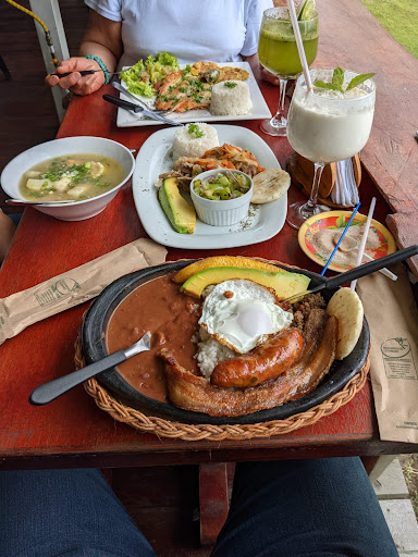 La experiencia es muy bonita, es un restaurante con una vista espectacular!!! No se lo pueden perder. La atención es buena las personas son muy atentas y están pendiente de lo que necesites. La comida simplemente deliciosa fue una experiencia bonita vas a sentir el sazón como en casa los platos no son radioactivos Esto quiere decir que no usan caldos de gallina artificial tampoco podrás ver los platos de color naranja( radioactivos) las limonadas de yerbabuena es cítrica si te gustan este tipo de sabores en tu paladar yo pedí limonada de coco súper rica también, la carne el pollo se sienten de finca los sabores como ningún otro muy difíciles de encontrar en el resto del pueblo Filandia. Lo súper recomiendo. No tuve dilemas de espera en el pedido puesto que llegué temprano eso de las 12:10 o 12:30 pm y estaba tranquilo el servicio fue rápido la comida calientica muy rico😉 además los precios mi buenos para otros restaurantes y te dan bastante comida como en casa de mamá ☺️ Volveré allí una y otra vez!...