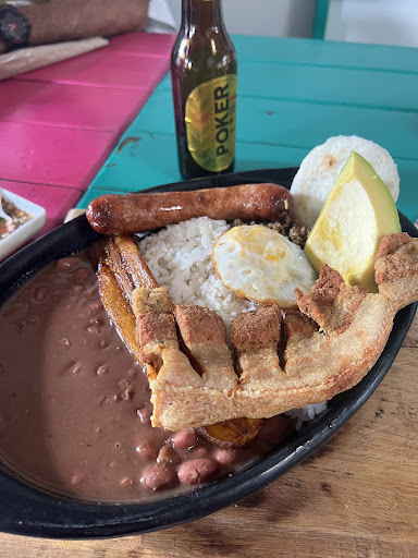 Read moreSoy un paisa de pura sepa. Llegué al lugar pidiendo el plato típico de mi región, bandeja paisa. La niña que nos atendió (por cierto muy bien), nos dijo quera con todas las de la ley y que era de las mejores del lugar. La verdad... ¡que decepción! De Bandeja Paisa sólo tenía el nombre y el precio ($35.000). Los frijoles estaban horribles y eran la mitad de la bandeja (los dejé todos), el arroz mal cocido, masatudo y sin sabor, la carne molida parecía que la aplicaran en aerosol, no tenía morcilla, el chicharrón era pura garra y grasa mal frita (tenía más carne un zancudo), no tenía el poquito de ensalada del campo, ni el hogao, no tenían mazamorra.... terminamos dándole casi todo a mi perrita y a un perro de la calle. En pocas palabras, ofrecerle eso como Bandeja Paisa, a un paisa, es una falta de respeto; y presentarle eso a un foráneo como nuestro plato típico, es un completo engaño, además de lo mal que hace quedar nuestro plato y nuestra gastronomía. Sólo resaltó el buen trato por parte de la mesera, fue muy amable y muy servicial, incluso nos pidió disculpas por el plato al final, reconociendo que no estaba bien, lástima que trabaje en ese lugar. PD. Igual cobraron el plato como si nada...