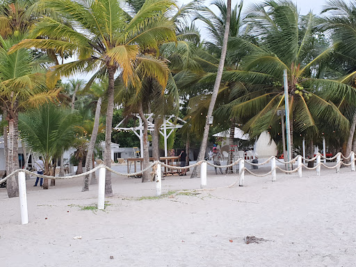 Al llegar al inicio de la playa se encuentra un restaurante que cuenta con parqueadero y carpas con sillas, que pueden estar incluidas si se hace el consumo allí.