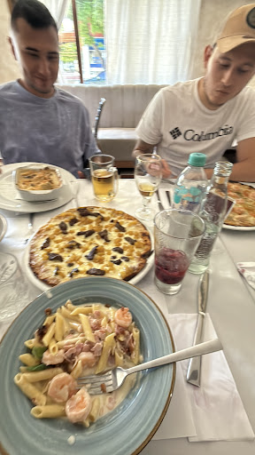 Probé varios platos y todos estuvieron deliciosos: pasta carbonara con camarones, pizza de piña y carne, pizza pepperoni, risotto, además de bebidas como vino y sodas. Todo estuvo espectacular. ¡Súper...