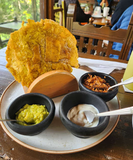 The place was nice, cozy, with a nice view. Since I was craving for a warm soup, the young lady suggested a cream of mushrooms which it was really good. Then I asked for a juice with milk and they suggested one with soursop and yerbabuena which it has not much taste even though I added 2 little packs of Stevia and lastly I had the day’s menu which was an organic salad, which was ok, lots of potatoes, which Made me feel in McDonalds, 4 little pieces of baked bananas which even though were very little, they were really good and finally the main item, a big piece of Punta de Anca de res with chimichurri casero, which even though I expressed to them I didn’t like the meat too too tender, I never expected it was going to be harder than a piece of leather shoe when you tried to chew it. I am always going to be wondering if they have any tender meat in that place ... 😳 Food timing: it took for ever for each dish to come. Perhaps because I was the only customer in the restaurant. Service: Friendly specially from the young lady that served me. On the the other hand, when the manager (or at least that is who I thought she was) asked me about my experience and I made the comment about the beef; her answer was “really?” Not a very encouraging comment to anybody who will be staying next door for a long long time. All communication during my visit was in Spanish. Spanish translate El lugar era bonito, acogedor, con una bonita vista. Como estaba ansiosa por una sopa caliente, la joven sugirió una crema de champiñones que estaba muy buena. Luego pedí un jugo con leche y me sugirieron uno con guanábana y yerbabuena que no tenia mucho sabor aunque agregué 2 paquetitos de Stevia y por último tuve el menú del día que era una ensalada orgánica, que estuvo bien, mucha papas, que me hicieron sentir en McDonalds, 4 pedacitos de plátanos horneados que aunque eran muy chiquitos quedaron muy buenos y finalmente el plato principal, un gran pedazo de Punta de Anca de res con chimichurri casero, que aunque les expresé a ellos que no meaba la carne demasiado tierna, nunca pensé que iba a ser más dura que un zapato de cuero cuando intentas masticarlo. Siempre me voy a estar preguntando si tienen carne tierna en ese lugar ... 😳 Tiempo de servicio: tomó una eternidad para que llegara cada plato. Quizás porque yo era el único cliente del restaurante. Servicio: Amable especialmente de la señorita que me atendió. Por otro lado, cuando la Gerente del lugar (o al menos esa es quien yo pensaba que era) me preguntó sobre mi experiencia y le hice el comentario sobre la carne; su respuesta fue "¿de verdad?" No es un comentario muy alentador para cualquiera que se va a quedar en el area durante mucho tiempo. Toda la comunicación durante mi visita...