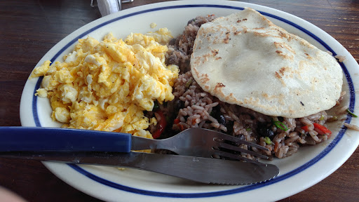 Mis amigos pidieron el gallo pinto, el plato más icónico de la comida costarricense. Este platillo no defraudó en absoluto, el arroz y los frijoles estaban perfectamente mezclados y sazonados con las especias tradicionales. La porción era abundante y venía acompañado de plátanos maduros y tortillas recién hechas.