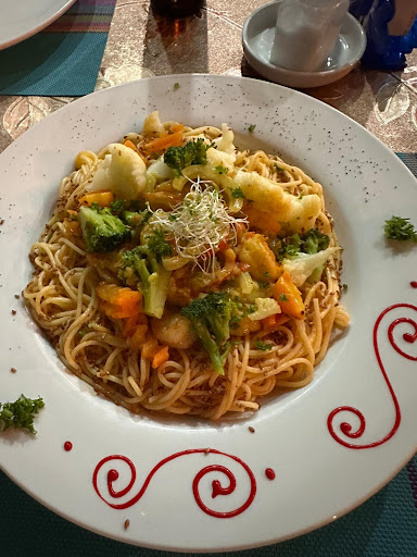 Many options on the menu, including traditional dishes, "fast food" and 11 options for Vegan/Vegetarian. I opted for the chickpea curry which was delicious and the portion massive. It was followed by a complimentary dessert!