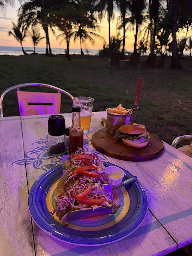 The food and ambience were so good that we went twice during our short stay in Guanacaste! On the first night, we dined in the open-air bar area and had the fish tacos topped with a zesty slaw and the Costa Rican style ceviche served with big round plantain nachos - both very delicious. On the second night, we sat outside in the beachfront area and had the veggie burger and another round of tacos. Again, very delicious and satisfying.