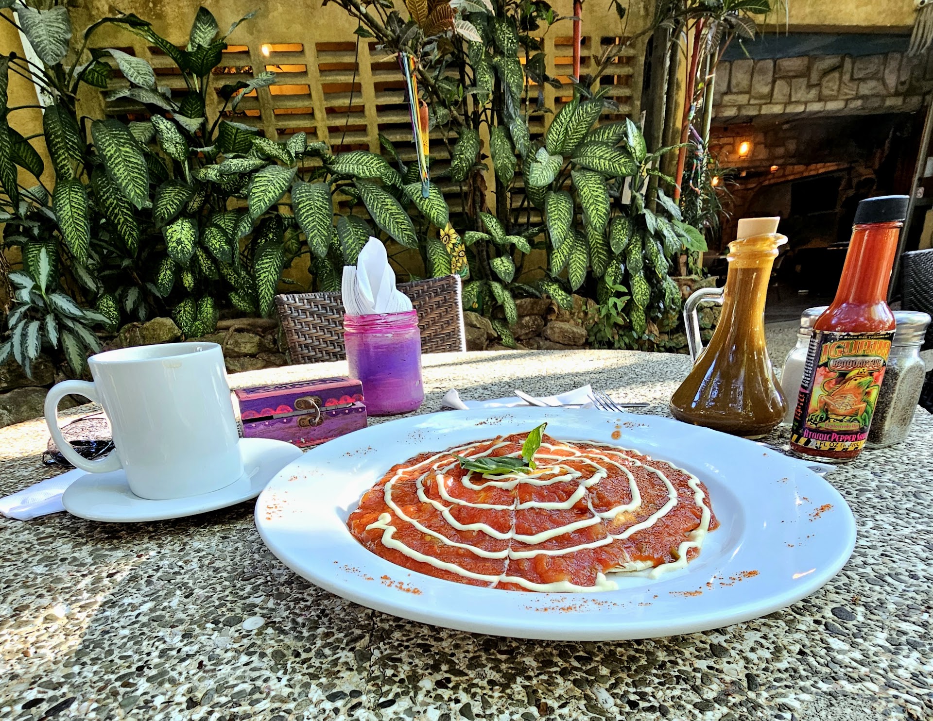 Read moreThe ambiance of this place alone is worth stopping for - especially the patio. But the food is another reason to make it a destination. There were four of us, and we all loved our meal. Cosadas are excellent - we had chicken and fish. 😋 Another ordered the Thai style chicken dish and it was tasty with a bite. Greatly enjoyed a well-made gin tonic. Saw a very large iguana - Pepe - in the tree above the patio fountain. He was well-mannered. Wait staff was very friendly with a great...