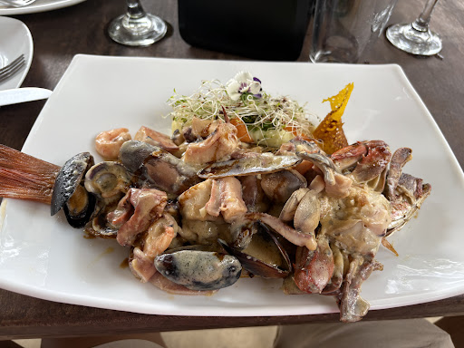 Read moreWe went for an early dinner so it was fairly empty when we arrived. Our waiter was very attentive and made great food and drink recommendations, answering any questions we had about the menu. All together, we had a tomahawk steak, salmon, mahi mahi, ceviche, and some fresh fruit daiquiris and juices. The ceviche was AMAZING! It was so fresh and had a good assortment of fish and shrimp. One serving was plenty for our group of five to share before the entrees came out. The salmon with lemon and capers and mahimahi in red curry sauce was tasty and beautifully plated. The tomahawk steak was seasoned well. We asked for it medium, but I would say it was more medium rare which we were okay with. With the open air/ room layout, a cool giant insect flew behind the bar towards the end of our meal, which was promptly removed. The bar tender could tell a few people in the group were interested in seeing the insect so he held the bug so we could touch it and take photos. Overall, the food was amazing and the staff were...