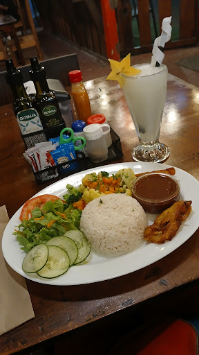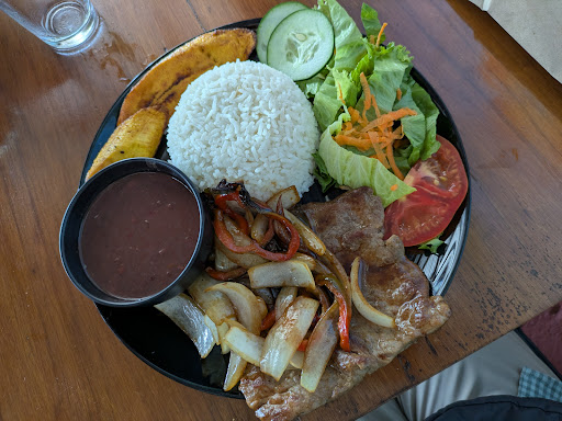 We had casados for lunch. They told us they serve tilapia for fish casado, which was a little disappointing as tilapia is, if I am not mistaken, freshwater fish and we got tilapia in all other restaurants in CR except for Uvita and Bahia Drake, facing the Pacific Ocean. It would have been nice if they served local fish as we are by the sea. The price for fish casado was 6,000 colones plus service, and in my view frozen tilapia fillet does not justify this price. Besides we have eaten enough tilapia for the last three weeks, and in many landlocked countries we used to live, so we went for pork/beef. We enjoyed our meat casados. We read positive reviews about ceviche, but we had quality ceviches in other parts of the country at lower prices, so we weren't tempted with those prices. We didn't ask, but it could well be tilapia that they serve for 'ceviche de...