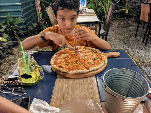 Read moreJust South of town, this place has outdoor and semi-indoor dining. Outdoor seating is close to road, so loud when cars and trucks pass. We had 2 appetizers, Bruschetta and Carpaccio. Both were absolutely delicious. It's obvious the bread is 100% homemade. We also had a Margarita Pizza, Jumbo Shrimp with Pasta, and a fish we were told was Mackerel, but tasted like a mild white fish. Kid enjoyed his pizza. Shrimp dish was so-so due to the bland white sauce. And, the fish (possibly Corvina/Mahi Mahi) was delicious.