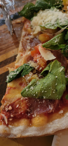 I tried the salad as am appetizer but i wasn't impressed. And i ordered the Prosciutto pizza with arugula. That was delicious. I was asked if i want hot sauce and i haven't tried anything like that with a pizza before. Try it next time. Just a dab. The dough is thin and crispy and the ingredients are abundant and seem to be of very high quality. Trust me, i have seen salty Prosciutto and it is not good.