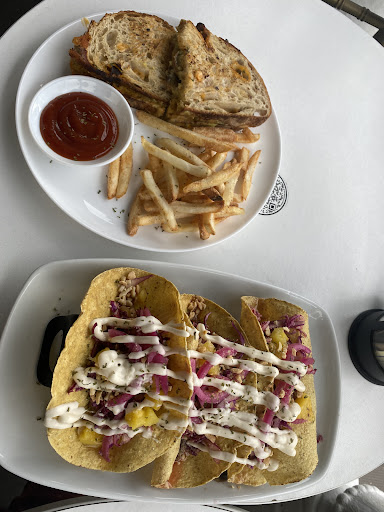 When you first walk in you think it’s just the window seat stools for seating but go through the back and up the stairs for more seating and then another spiral stair case to take you to the balcony ~ it’s just divine. These tacos were my favorite!!!! My partner and I ordered almost half the menu to dine in and the other half to take away bc it was our last night and just didn’t know how to choose. We are sooooooo happy with this place. The service was great, the food-I’ve said this so many times but this time I think everyone will agree- it is the best vegan food we have ever had. You can not go wrong with anything on the menu. I promise you! You will love! It’s fresh! Light! Flavorful! Great portions. The avocado grilled cheese sandwich yum!!! The tar tar Yum! My partner loved the burger. The chai lattes and milk shake were allll so great we are thrilled and can’t wait to go back. Must visit if you are in sjo...