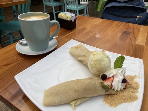 Read moreI had a cappuccino and the “lemon pie” crepe. Both were neatly balanced, the coffee was just bitter enough and the crepe (even with ice cream) wasn’t excessively sweet. I hung out for several hours, worked on my computer, did a conference call on Zoom. I had the prettiest background of anyone on the call.