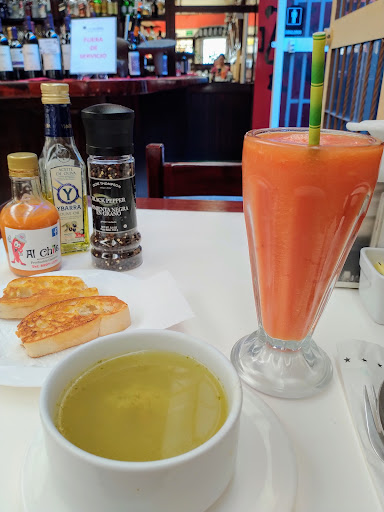 What an amazing place that we came only 10 minutes before closing and they allowed us to have a quick dinner. They close at 7 PM on Wednesday or Miércoles and they were so Interesting I thought it would be like a little glass of wine glass Gracious and I was so thankful. The staff waiter was very nice to ask the kitchen to cook arroz con camarones (rice with shrimp) and arroz con (rice with pork). Both dishes came out in 7 min and the portions were huge and it was delicious. The rice was a bit soupy w the sauce but that how they do it and it was good bc it had a lot of juicy flavor. The salad was really good and light with a vinaigrette sauce with berries, thinly sliced carrots, and different colored cherry tomatoes. The fries were really extra crispy and so good with the ketchup. Beautifully decorated with paintings and a huge mirror. There are two sections and also an area for desserts and small...
