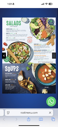 Ósea saque mi tiempo para ir a Rostipollos como lo he hecho por años , invertí el tiempo en escoger un platillo con un menú brindado en un lugar supuestamente serio y está malo , no es uno son decenas malos , y los demás menús también menos UNO el del salón .