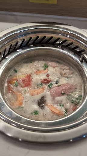 Read moreLa experiencia gastronómica es bonita. Es un ambiente diferente a lo que estamos acostumbrados, la comida es rica, el caldo y salsas con buen sabor. No obstante, el servicio es pésimo. Teníamos reservación a las 12:00md, tuve que solicitarle al mesero 2 veces que me explicara la dinámica ya que era nuestra primera vez y nunca tuvo la iniciativa de hacerlo, nunca nos dijo lo de las salsas, lo descubrimos porque veíamos a la gente levantarse y traer tacitas. No respetan el orden de entrega según orden de llegada (decidieron entregarle primero a un grupo de 4 personas el caldo y los refrescos que a nosotros que éramos 2 y habíamos llegado mucho antes) y los tiempos de espera por un vaso, un cubierto o el mismo refresco son risibles. Siento que las personas encargadas del servicio no es que fueran malas, sino despistadas, lentas y les pasaba el alma por el cuerpo y eso que NO estaba lleno. Fue tanto el tiempo de espera por el caldo de mi compañero que prácticamente tuve que comer sola y a él le terminaron regalando una bebida por el inconveniente. Creo que todos hemos sido nuevos en algún trabajo y quizá fuera el caso de ellos pero de igual forma, recomiendo mayor capacitación...