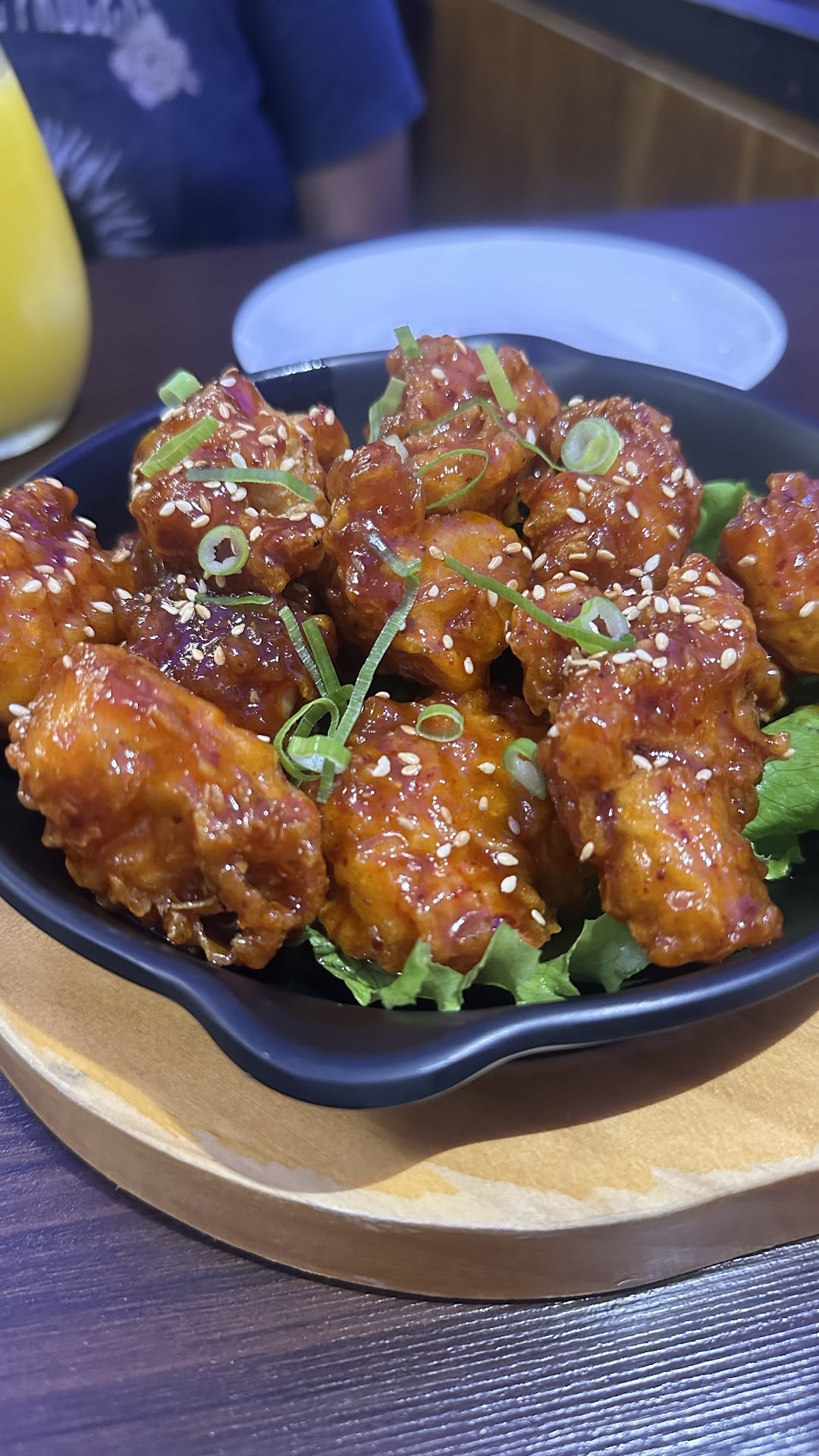 Una de las mejores experiencias que he tenido fuimos mi novia y yo al restaurante por nuestro aniversario. Fue la mejor decisión que pude tomar. La comida estaba demasiado buena. Pedimos un KFC, que es una entrada con salsa sweet soy, y estaba demasiado bueno: crujiente, jugoso y la salsa tenía el dulzor al punto. En algunos restaurantes, estas mini piezas de pollo suelen tener como con mucho empanizado y poco pollo, pero este de KFC era como 5% empanizado y 95% pollo, y era una muy buena cantidad. Súper recomendado.