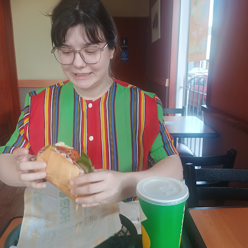 Varias opciones, gran tamaño de los sandwiches y lo que sobre puedes llevarlo sin problemas, hay quejas, como que es muy pequeño y las lays son una mala opción para pedir con un combo, siempre pido galletas y comerlas con café o comerlas ahí mismo, pero en general es una gran opción si tienes prisa o si también tienes tiempo, si tienes mucha hambre o si solo quieres comer algo pequeño, también hay opciones veganas si es que lo deseas, bueno eso de “opciones” es más simplemente no pedir carne pero ustedes entienden, tal vez sea raro pero es mi restaurante favorito, vayan si desean comer algo de forma cotidiana, ya si quieren “Comer enserio” como algo planeado desde antes obviamente hay mejores, pero nunca tienes que dejar a...