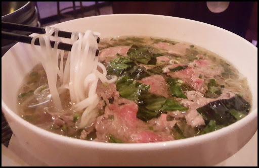 PHO All 3 times I've ordered Pho. The rice noodles are the thin rice noodles, just the way I've always had it. Second, the broth .... is amazing!! It definitely has the authentic flavors that a pho broth should have and what I love most about it is that it is very light, and not covered with oil on the surface. Do slurp up the broth at the end of the meal - it is the best part of this dish! Though it might look like a simple recipe of bone broth and rice noodles with thinly sliced beef, a lot of TLC goes behind the broth, cooking it for hours on end simmering all the herbs and ingredients, the broth of this dish is what MAKES the pho!
