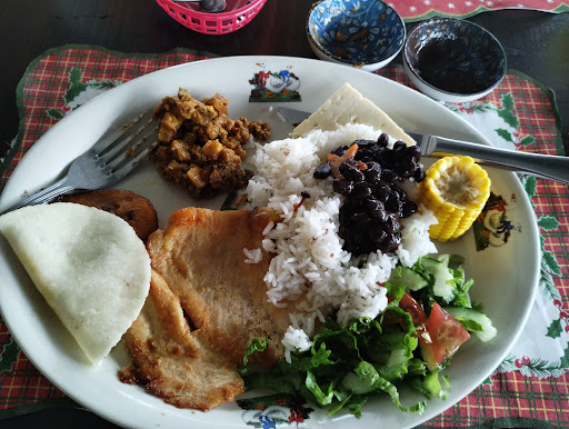 That being said, the food was amazing. We had the Casado with Fillete de Pollo (Chicken Breast Fillet that comes with with Rice, Beans, Picadillo, Plantains, a Corn Tortilla and a slice of authentic Costa Rican Cheese, Salad and a piece of Corn). Tasty, clean, and filling.