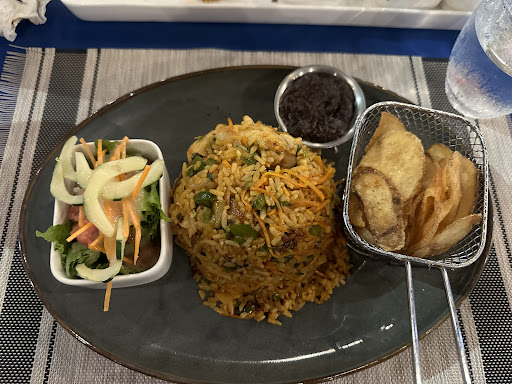 The place must have changed owners or management because the menu and name in the reviews are different than the actual restaurant. The food was good, with large portions. I had a pineapple basil smoothie with rum added to it. You must try it! The chicken fried rice...