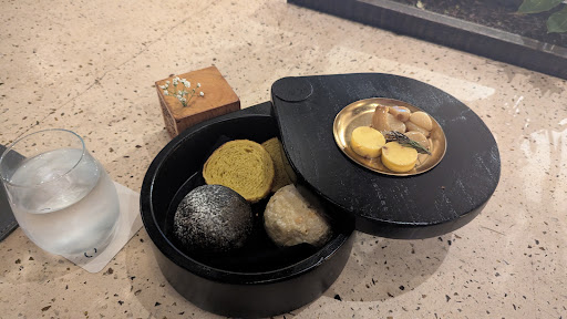 Service is amazing super nice and super attentive. I was just one person and they cared for me like they would a group of 7 people. Always there and filling up my glasses,taking plates, and giving Recs.