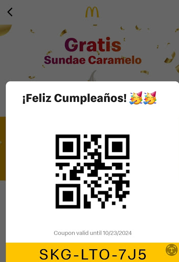 Read moreI was using the McDonald's app. It's my birthday this monrh and the app tells me I can receive a free Sunday. I read the terms, which says I can get the Sunday anytime during my birthday month. The app has me download the coupon and the coupon says it is valid until October 23. Today is October 23 but the cashier said my coupon was only valid on the day of my birthday. WHAT? The coupon and the terms I read...