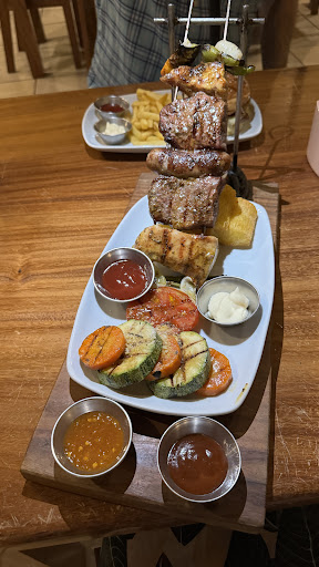 Fantastic restaurant. Recommended by hotel staff at the Rinconcito Lodge (THANKS HEIDI!). Big portions, great taste. I had the Pincho Kebab aka chicken skewers, 3 in all (one with grilled pineapple, one with grilled tomatoes, and one with onion and peppers.) The chicken was a mouthwatering sensation - nice a juicy with fantastic seasoning. For my sides I got Cajun fries and sautĂ©ed veggies. OMG the veggies. Never have I wanted more veggies so badly in my life! Next time, I will get a double portion of the veggies. And by next time, I mean tomorrow because Iâm going back and will definitely have the 2 for 1 margaritas. My GF had the BBQ Brisket. Smoked for 12 hours! Tender, delicious. Beyond the food, the service was fantastic. Both the server and owner asked us if they can help translate the menu (we only know a little Spanish.) definitely go. Sorry for no pictures - the food was too good to wait!