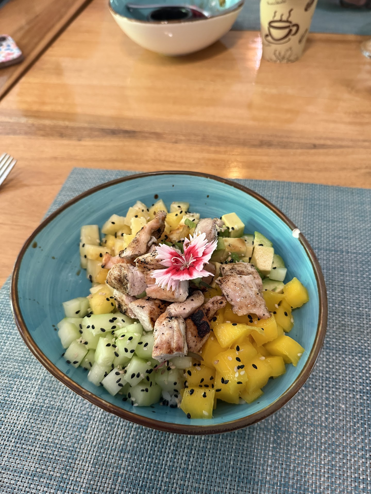 The meat portion was small— about 2oz, the rice was pretty hard, and the bowl was not very flavorful. The fruit was fresh, but the bowl overall was mediocre compared to other poke across Costa Rica.