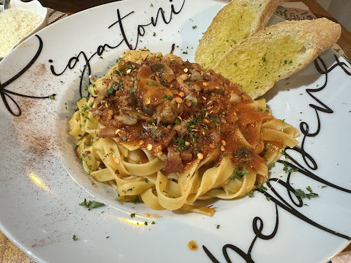 Me encanta este lugar, la pasta estaba deliciosa y el sabor se volvió increíble al ponerle el aceite de oliva con chile que el dueño prepara. La vibra es muy casual y única, pero puede ser que no la comprendas si eres el tipo de persona que sólo paga y espera un servicio y no se conecta con las personas como seres...
