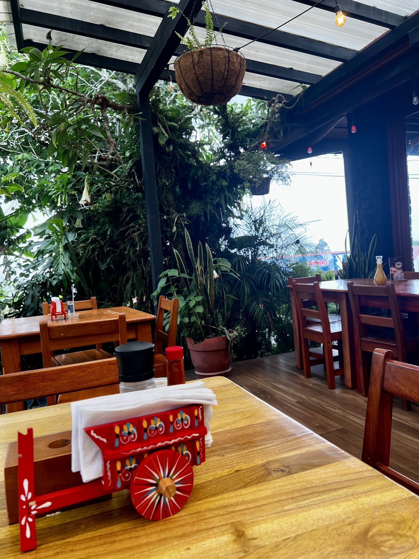 We had a lovely lunch today at Restaurante El Sabor de la Montaña. The restaurant wasn’t too busy and our server Daniel gave us the choice of a covered patio seat or indoors. We decided to enjoy the fresh mountain air.