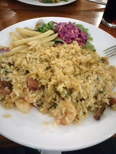 Read moreEl pescado frito no estaba gustoso, el aroma dejaba entrever que no era producto fresco lo cual debe saber el cocinero desde que lo prepara. La salonera olvidó que el cliente tiene la razón en lugar de sugerir que se debió solicitar el cambio del plato antes de comer una parte del pescado, no es una forma de reaccionar porque el cliente debe probar la calidad y sabor para luego confirmar que es algo que no quiere. Por eso se le llamo a la salonera para que retirara el platillo. Hay ausencia de preparación del personal en atención al cliente porque lo primero que debe probar al empresario es la salud de quienes llegan a consumir alimentos y no enfermarse por producto caduco. Hay un parqueo estrecho muy limitado. Es un salón amplio y varios televisores para entretenimiento. La mariscada y el arroz con camarones no se observaban apetitoso sino cocinado con aceite reciclado, mucho aroma fuerte al parecer de recalentar los alimentos previamente preparados y no recién preparado. Los precios son muy elevados en relación a la calidad y porciones de la comida y el primer salonero se equivocó en los platillos solicitados...