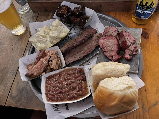 Read moreEl servicio al cliente fue excelente. Las porciones de carne me parecen muy pequeñas para lo que valen, yo entiendo que es carne hecha a la leña/parrilla y que eso tiene su skill y demás pero ya habían precios un poquito muy pasados. Mi novio y yo comimos cole slaw y la ensalada de remolacha, la de remolacha estaba muy ácida y salada y la de cole slaw no estaba cremosa, estaba aguada, no tenía sal y estaba demasiado rallada. Estaba tan rallada que no había nada que masticarle porque pasaba recto, era como que agarraron los ingredientes y los pasaron directo a una licuadora, y mas que una ensalada, eran un puré. Los plátanos en miel estaban ricos pero algunos pedazos estaban muy gruesos por lo que en el centro, dos nos salieron crudillos. Nos pedimos los dos pork bites los cuales si estaban BUENÍSIMOS, si no fuera porque la porción valía 3500 hubiéramos comprado más, definitivamente porque si estaban buenos. Nos pedimos una porción de puré de papa porque no había mac and cheese y estaba bueno, le faltaba un poquito de sal pero nada que no se pudiera arreglar en la mesa. Todo fue muy rápido y la comida estaba caliente pero en definitiva cero recomendadas las ensaladas. El mesero nos preguntó que como estuvo la comida a lo que le explicamos lo que nos pasó y nuestra opinión a lo que no dijo nada y nada más retiro la bandeja. Después de ver un tiktok donde la comida toda se veía buenisíma, si fue un poquito...